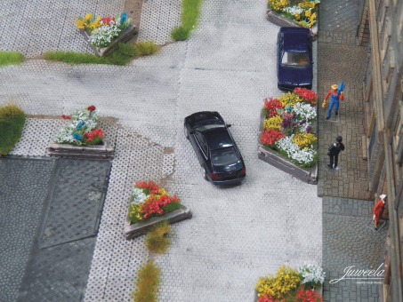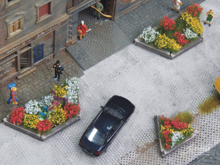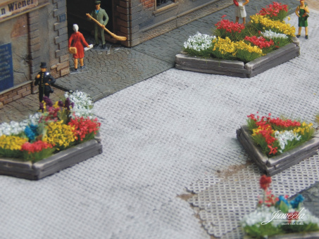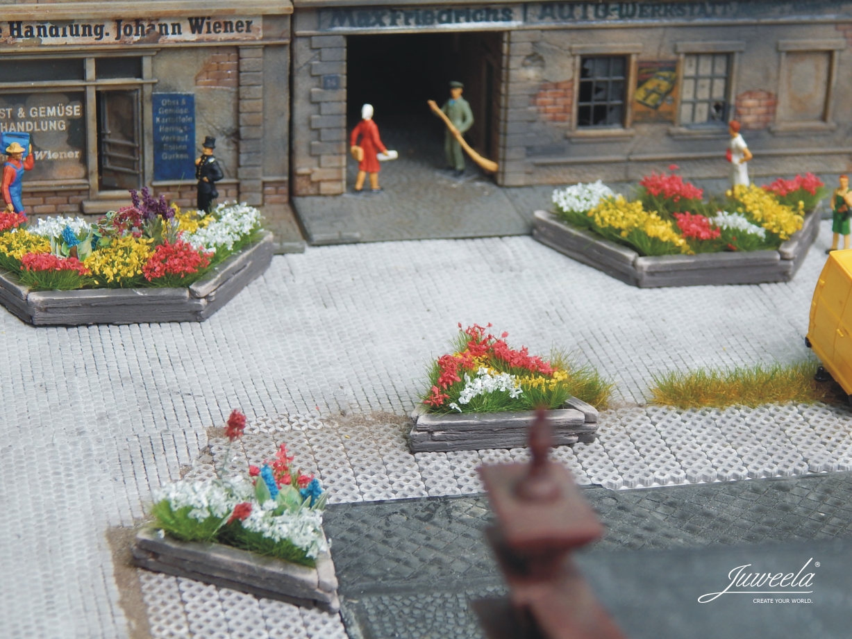 Juweela 28244 (H0) – Pflanzkübel aus Holzschwellen, groß und klein, 10 Stück