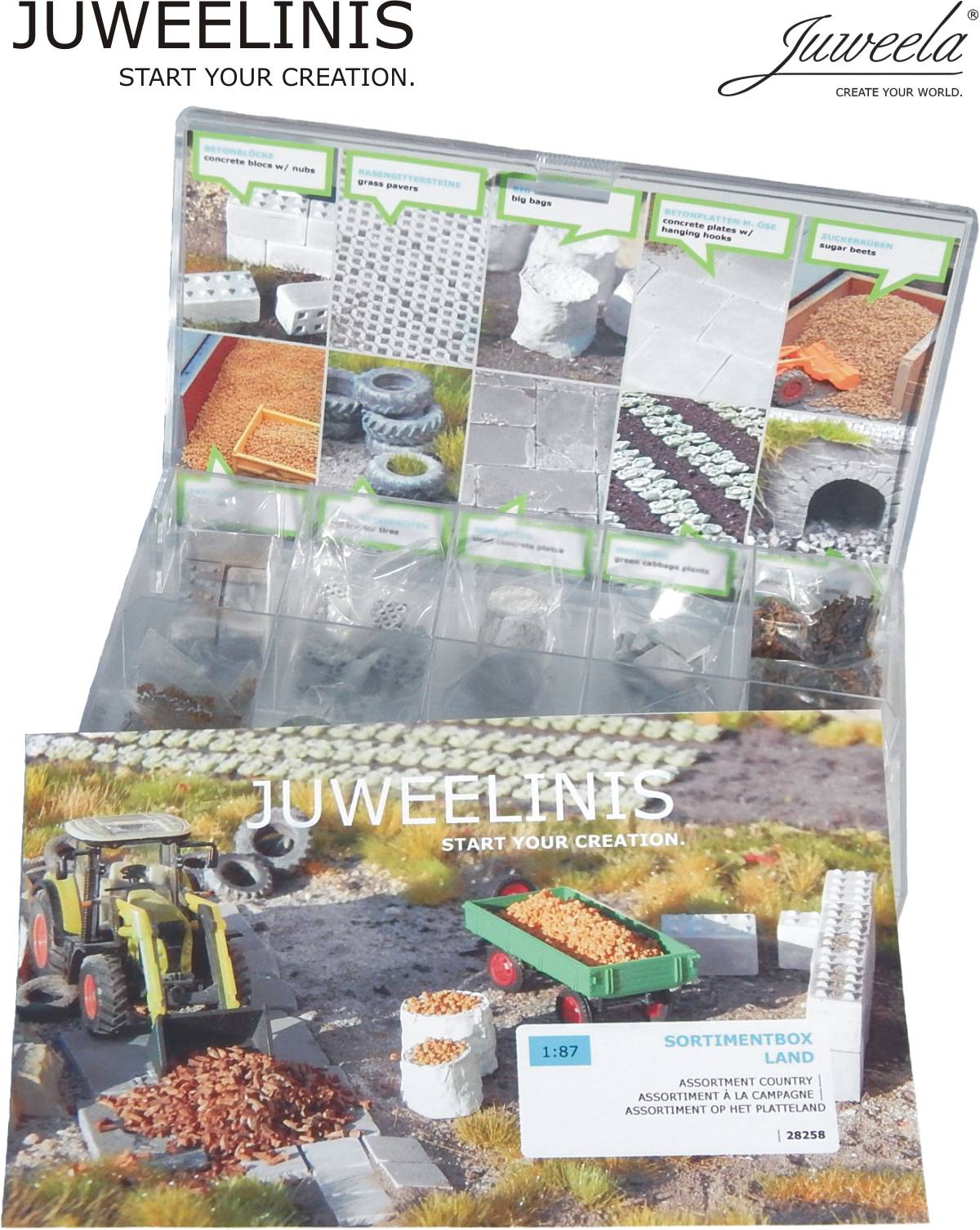Juweela 28358 (H0) – Sortiment-Box Land, 10 unterschiedliche Artikel