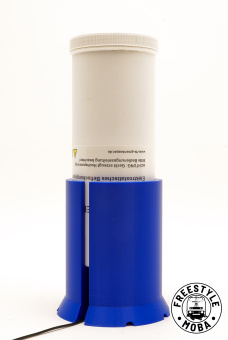 In diesem lässt sich der RTS Greenkeeper ® einfach abstellen. Durch eine Ausprägung innerhalb der Öffnung wird das Gerät passend gehalten, so das auch das Gegenpolkabel eingesteckt bleiben kann. Somit sind beide Hände frei zum befüllen oder wechseln des Behälters.