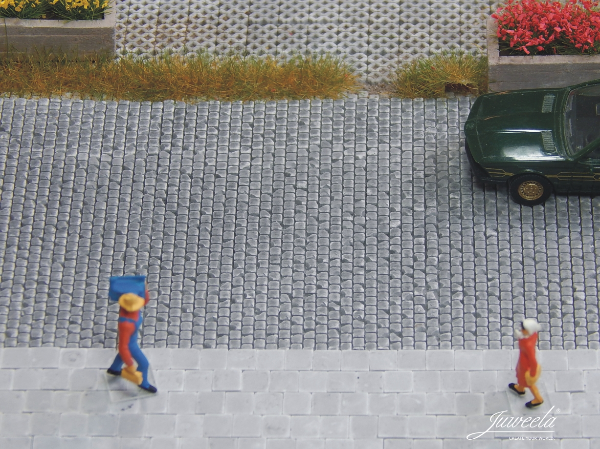 Juweela 28267 (H0) – Gehweg- /Bürgersteigplatten hell, 870 Stück