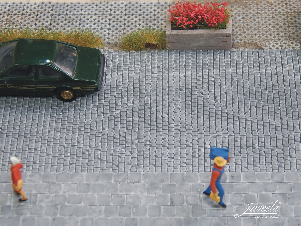 Juweela 28270 (H0) – Gehweg- /Bürgersteigplatten dunkel, 2600 Stück