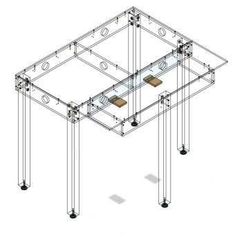 Für den Aufbau mehrerer Module stehen praktische Verbinder zur Verfügung. Sie ermöglichen eine stabile Verbindung, sodass nicht jedes einzelne Modul mit eigenen Standfüßen ausgestattet werden muss. Selbstverständlich verfügen die Module über Kabeldurchführungen an der Unterseite und an den Übergängen. So ist eine saubere und effiziente Verkabelung innerhalb der gesamten Anlage gewährleistet.