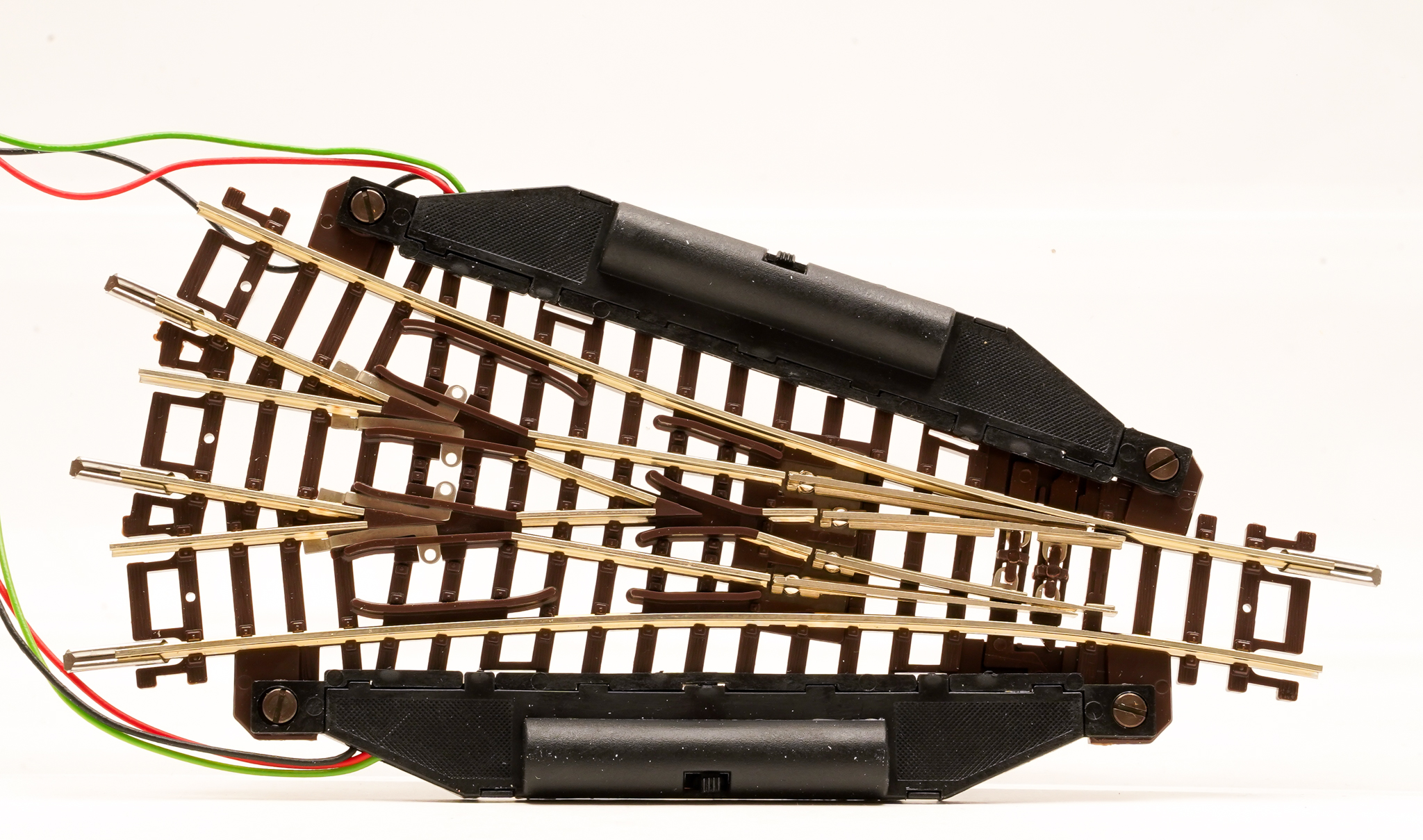 Fleischmann 22247 (N) – Dreiwegweiche, elektrisch, Weichenwinkel 15°, ohne Schotterbett