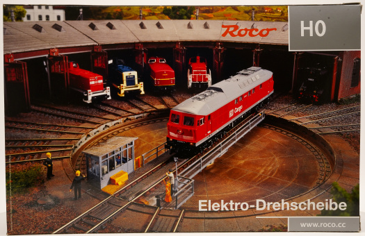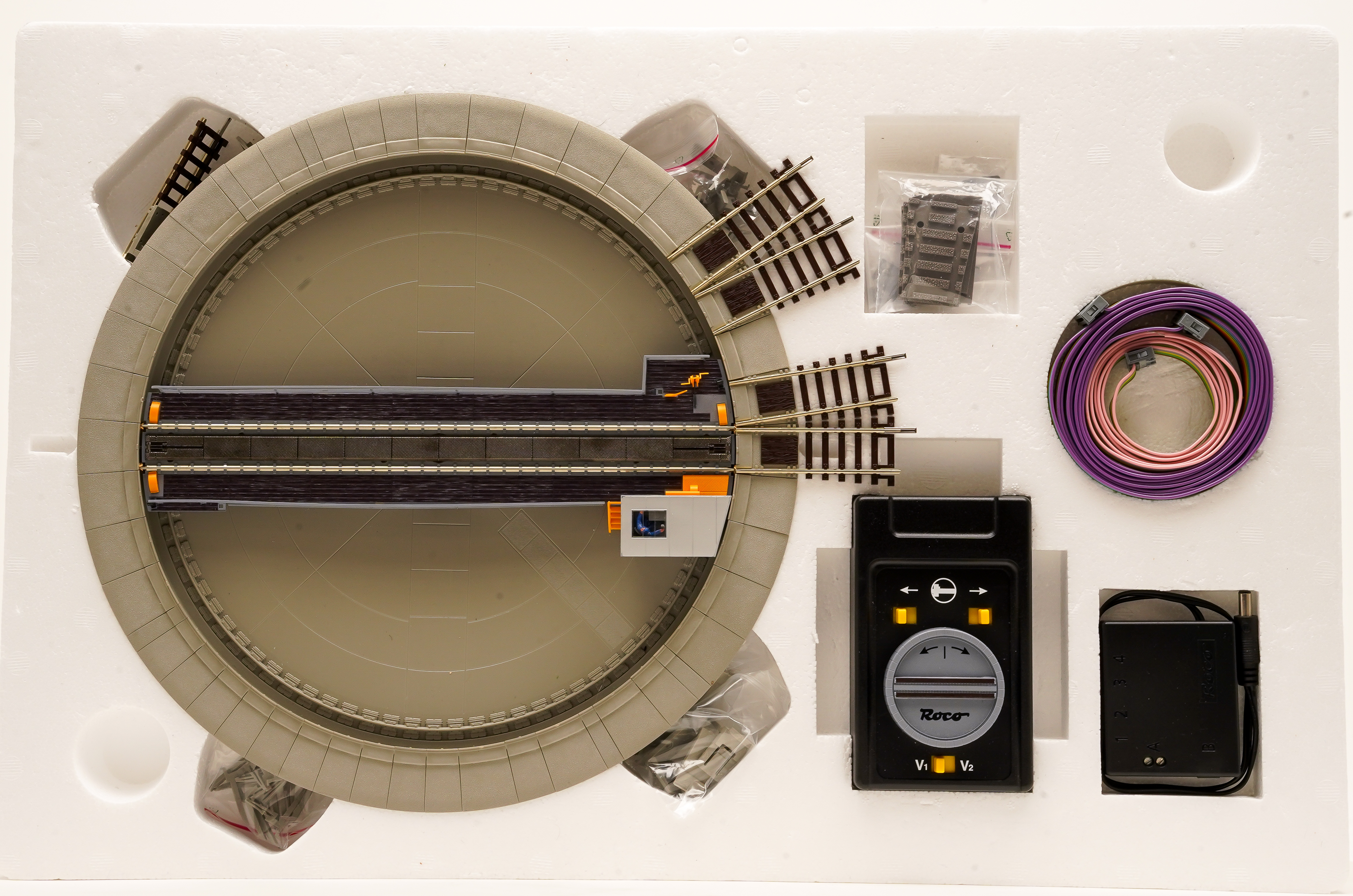 Wie beim Vorbild können auch beim ROCO-Modell zwei Drehgeschwindigkeiten vorgewählt werden. Die Fahrstromeinspeisung erfolgt in die Drehbühne. Die Fahrspannungsversorgung der Gleisabgänge kann über das Steuergerät zugeordnet werden. Damit wird verhindert, dass bei zwei gegenüber liegenden Gleisabgängen eine evtl. abgestellte Lok unabsichtlich losfährt.*