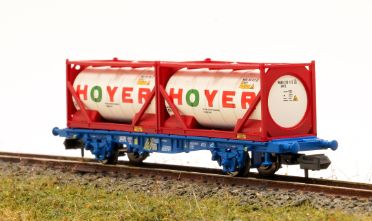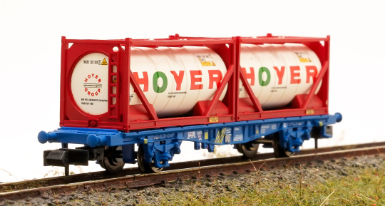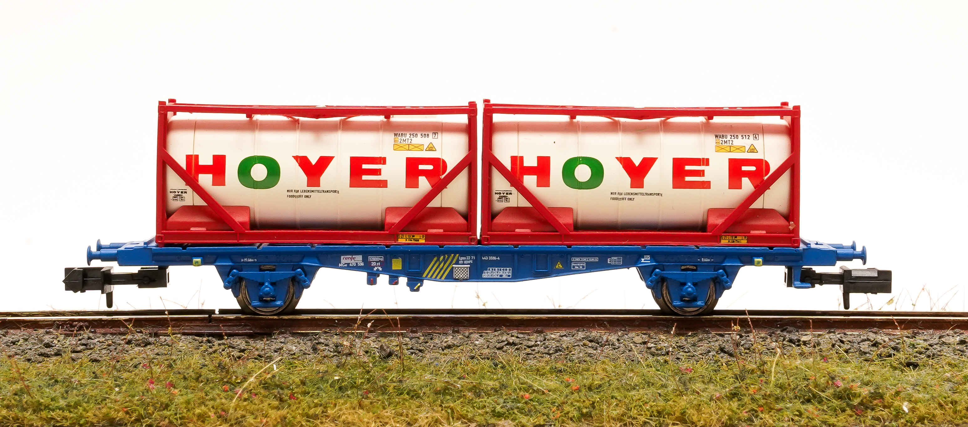 Minitrix 15649 – Container-Tragwagen Lgnss, mit 20 Fuß Tank Containern Hoyer der renfe