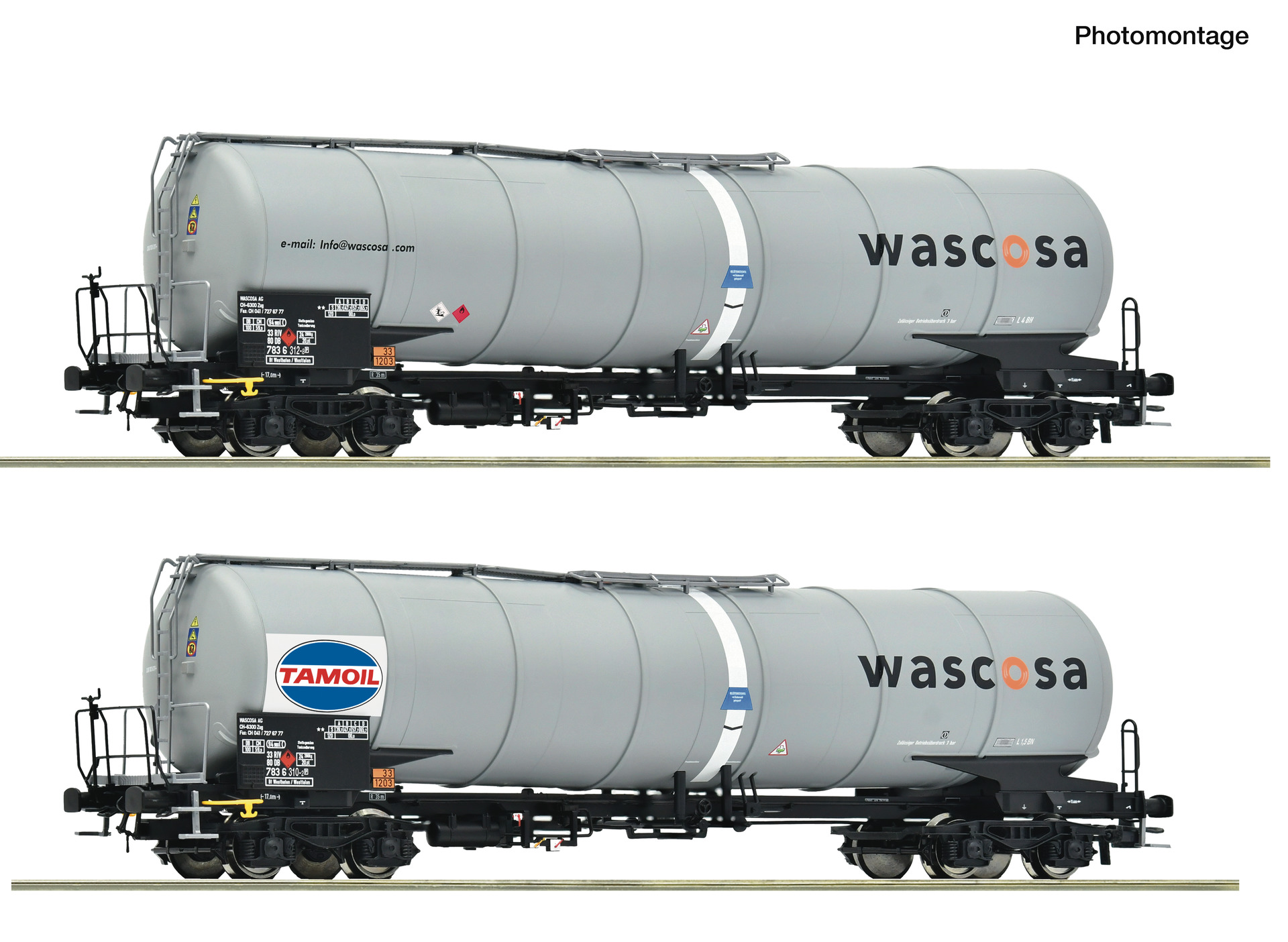 Wagenset mit zwei 4-achsigen Kesselwagen, Gattung Zacns, der Wascosa/Tamoil.