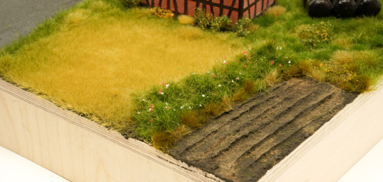 Wir gestalten ein gepflügtes Feld sowie ein Kornfeld mit miniNatur-Grasfasern. Dabei erlernen die Teilnehmer das Modellieren mit Strukturpaste sowie das Verarbeiten mit einem Elektrostat und Mischen von Grasfasern.