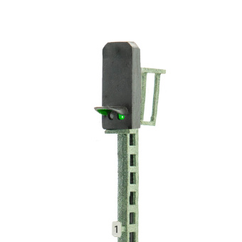 -Bauteile unlackiert; Farbgebung realistisch mit grauem Mast. Zur optimalen Farbgebung empfehlen wir unseren Lack DB 601 Bronzegrün für lackierte Signalmasten (Gestaltungsbeispiel siehe Fotos)