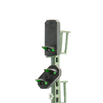 -Bauteile unlackiert; Farbgebung realistisch mit grauem Mast. Zur optimalen Farbgebung empfehlen wir unseren Lack DB 601 Bronzegrün für lackierte Signalmasten (Gestaltungsbeispiel siehe Fotos)