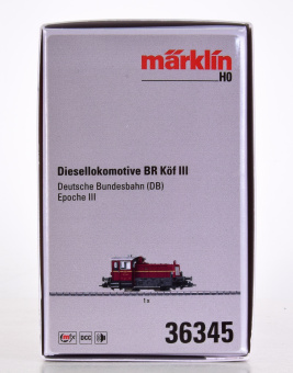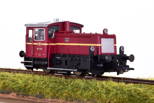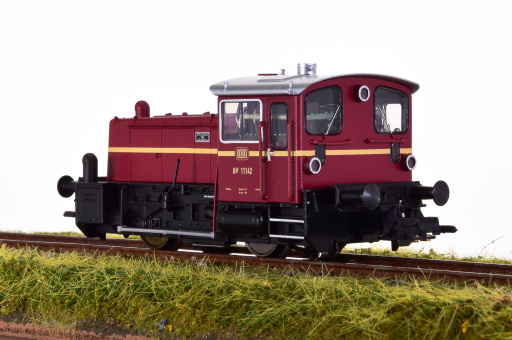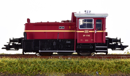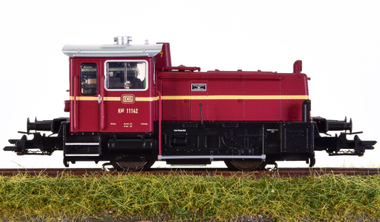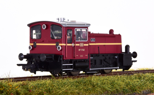 Vorbild: Dieselhydraulische Rangierlokomotive Baureihe Köf III der Deutschen Bundesbahn (DB) mit der Bezeichnung Köf 11. Farbgebung in purpurrot. Betriebszustand um 1966.