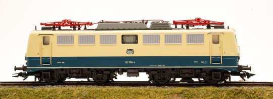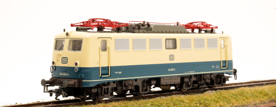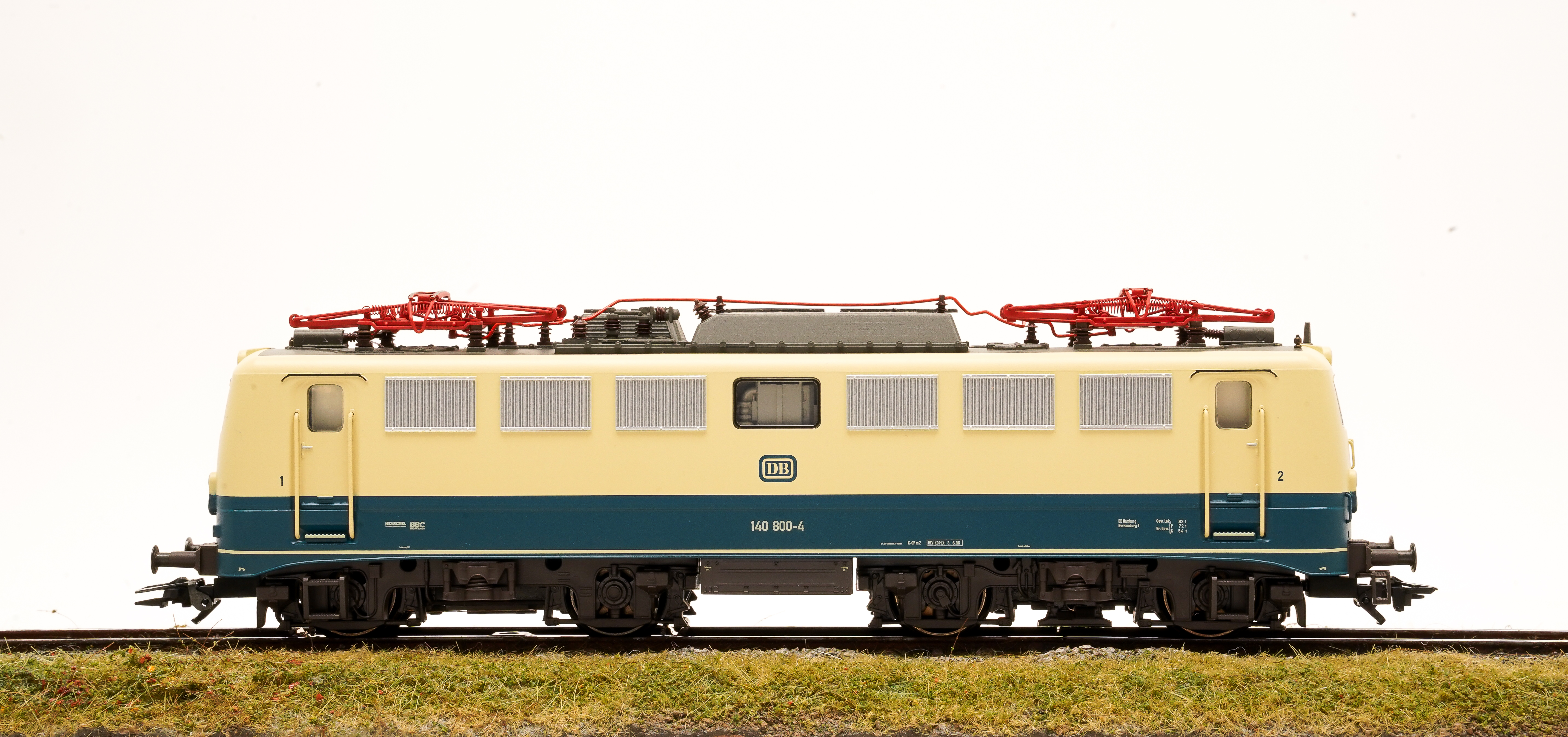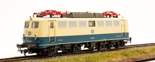 Vorbild: Elektrolokomotive Baureihe 140 der Deutschen Bundesbahn (DB). Ausführung mit Verschleißpufferbohle. Ozeanblau/Elfenbeinfarbene Grundfarbgebung.