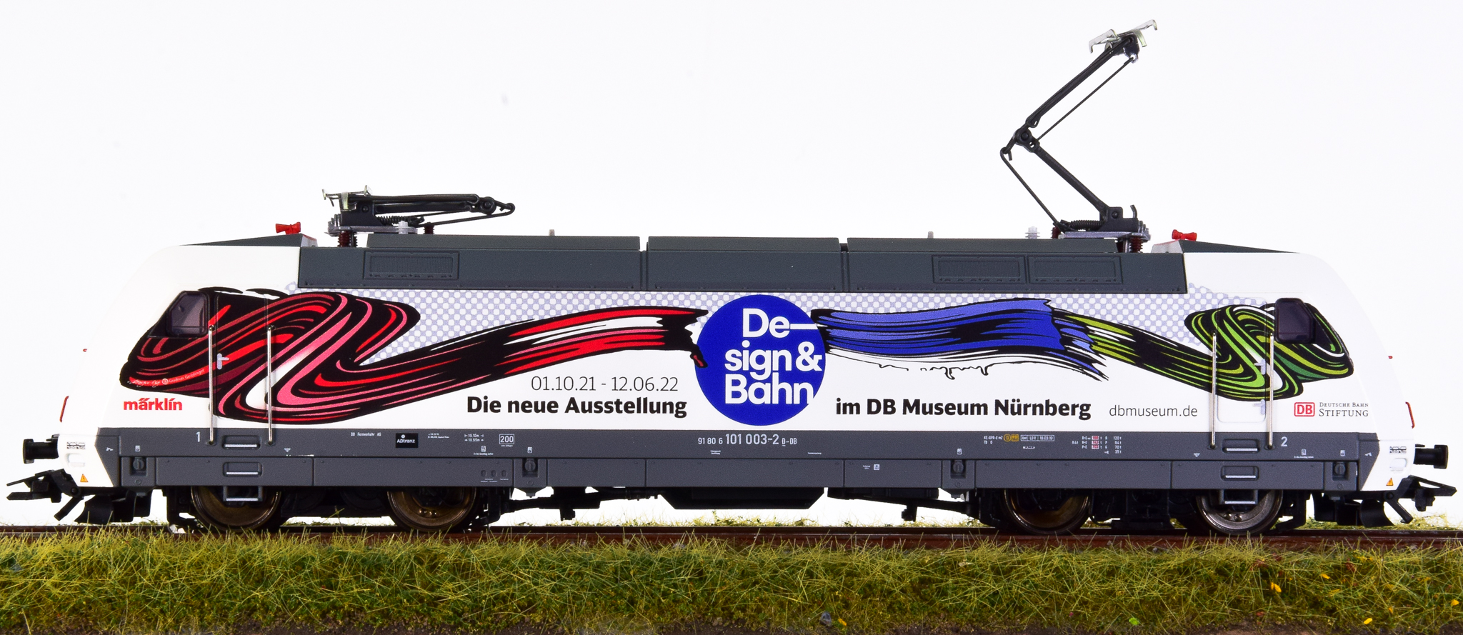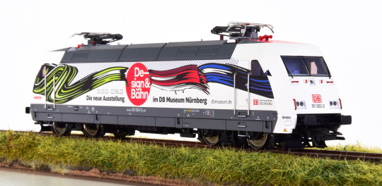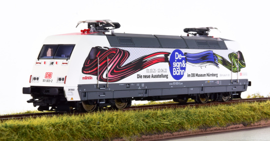 Vorbild: Schnellzuglokomotive Baureihe 101 der Deutschen Bahn AG (DB AG). Werbegestaltung "Design & Bahn". Betriebszustand 2021