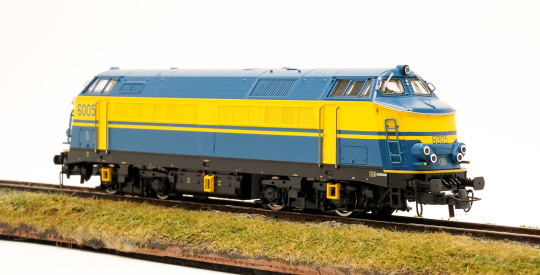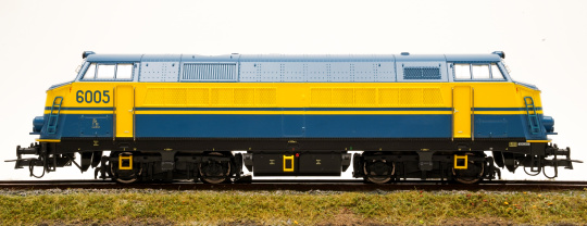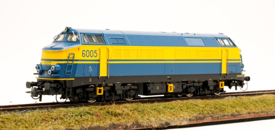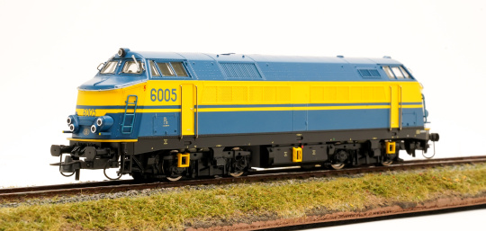 Diesellokomotive Serie 60 der Belgischen Staatseisenbahnen (SNCB/NMBS). Ausführung in blau-gelber Lackierung. Betriebszustand: 1980er Jahre. Einsatz: Personen- und Güterzüge.