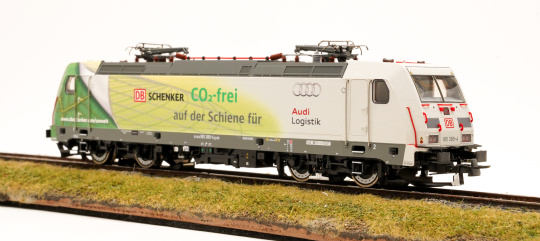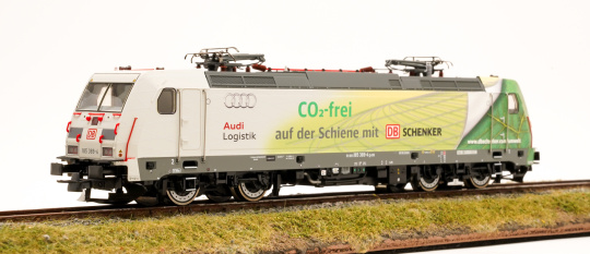 Die 185 389 wurde 2009 an die DB AG geliefert und hat eine Zulassung für Deutschland und Österreich. Im Zuge einer umfangreichen Kooperation beim Transport von Neuwagen zwischen dem DB-AG Konzern und dem Automobilhersteller Audi erhielt die Lokomotive ein auffälliges Sonderdesign.