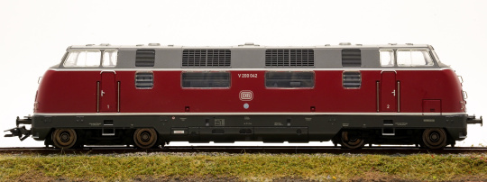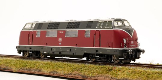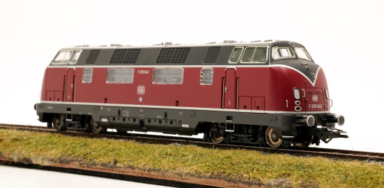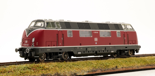Schwere dieselhydraulische Lokomotive Baureihe V 200.0 der Deutschen Bundesbahn (DB). Mehrzwecklokomotive in klassischer purpurroter Farbgebung
