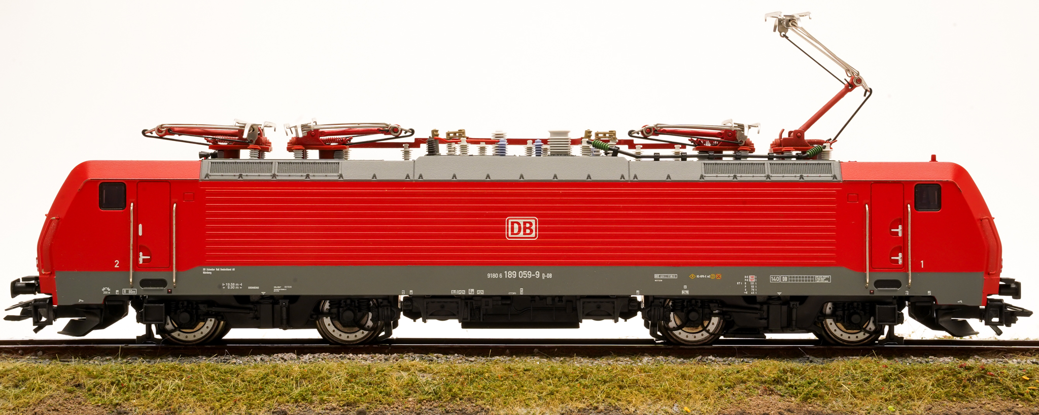Vorbild: Schnelle Mehrzwecklokomotive Baureihe 189 der Deutschen Bahn AG (DB AG). Mehrsystemlokomotive mit 4 Dachstromabnehmern. Aktueller Betriebszustand.