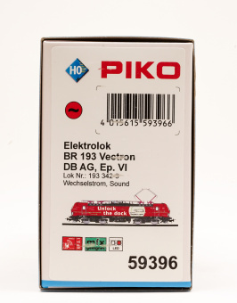 Druckvariante der BR 193 im Design "Unlock the dock" der Epoche VI. Mit der BR 193 liefert PIKO ein hochpräzise gefertigtes Modell, das auf der Basis eines soliden Zinkdruckgussrahmens und der Ausstattung mit bewährten PIKO Standards über zahlreiche Extras verfügt.