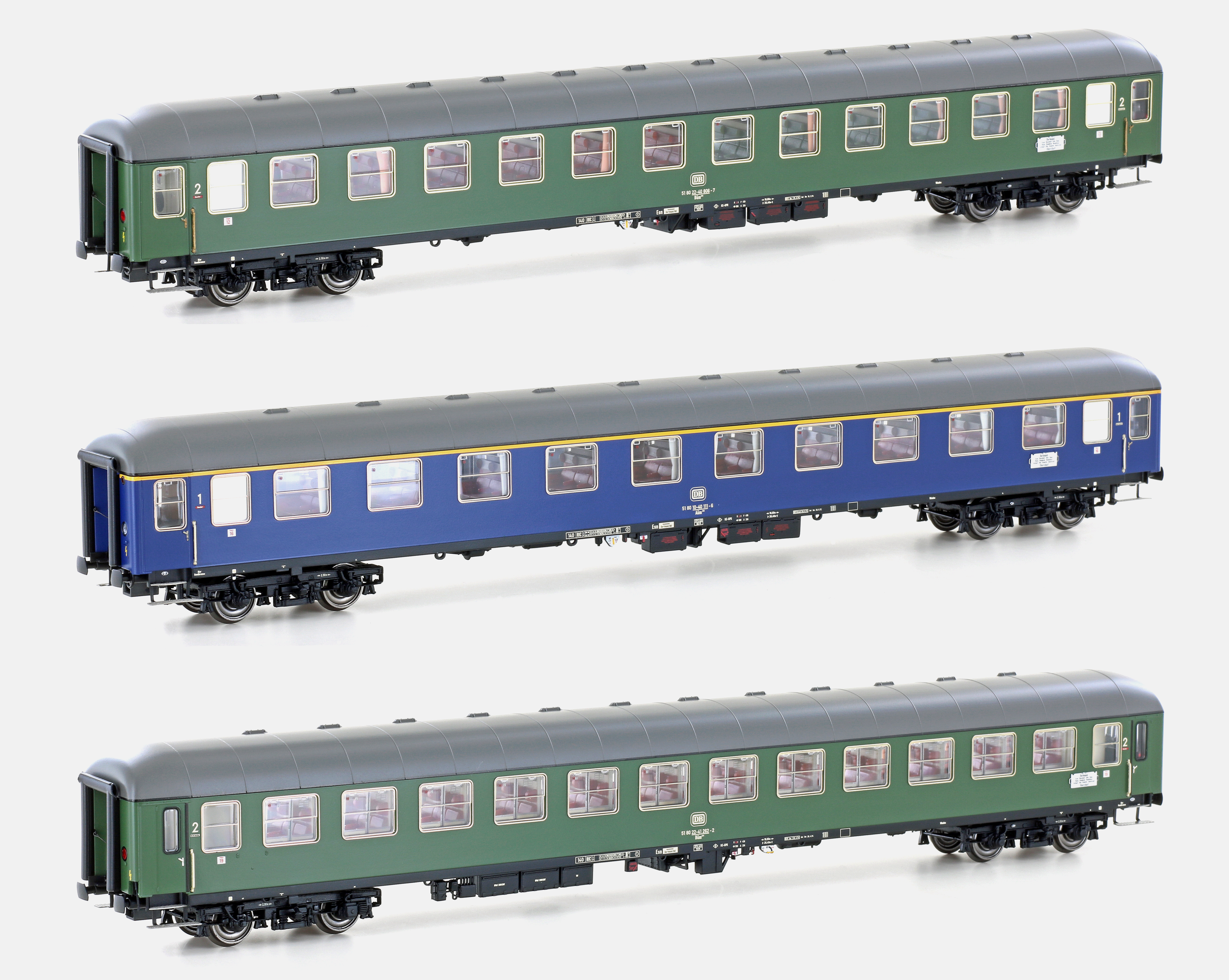 Unsere Wagen-Modelle sind Made bei L.S. Models. Wie bei Hobbytrain/LSM üblich, sind die Wagen auch bis in kleinste Details innen und außen wiedergegeben. Die Seitenwände der Abteile bestehen im Modell aus durchsichtigen Kunststoffstreifen, die authentisch mit beidseitigen sichtbaren Profilen, Füllungen, Reservierungstafeln, Lüftungen usw. bedruckt sind.