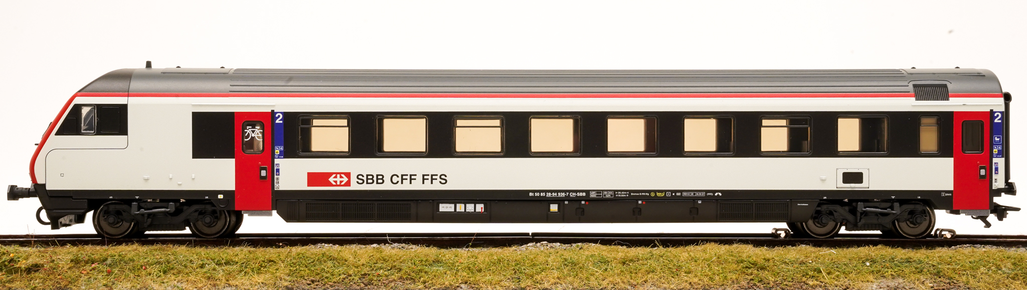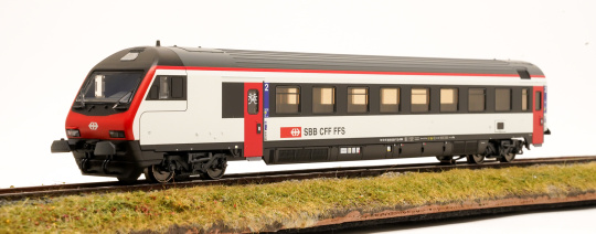 Schnellzug-Steuerwagen für Wendezüge der Schweizerischen Bundesbahnen (SBB/CFF/FFS). Einheitswagen Typ EW IV Bt, 2. Klasse. Gestaltung im aktuellen InterCity-Design, mit markant roten Türen. Aktueller Betriebszustand.