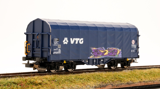 Piko 58965 (AC) – Schiebeplanenwagen Shimmns der VTG, mit Graffiti