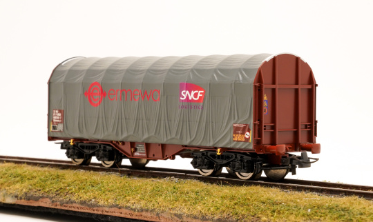 Roco 76450 (AC) – Schiebeplanenwagen Shimmns der ermewa, eingestellt bei der SNCF LOGISTICS