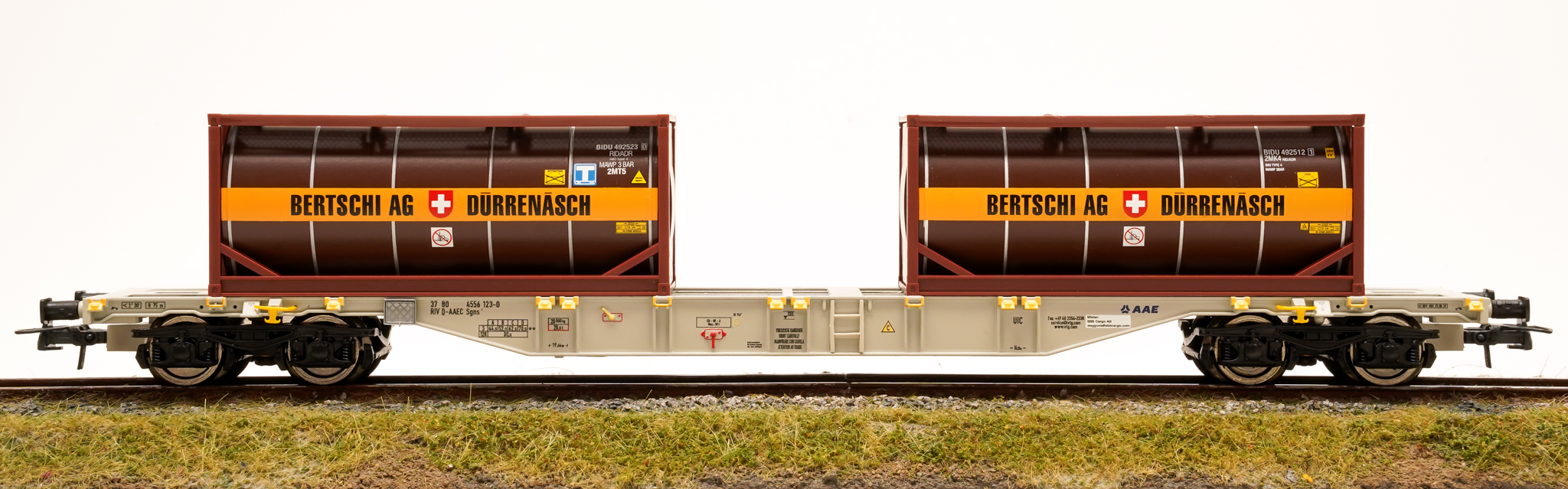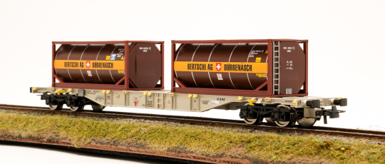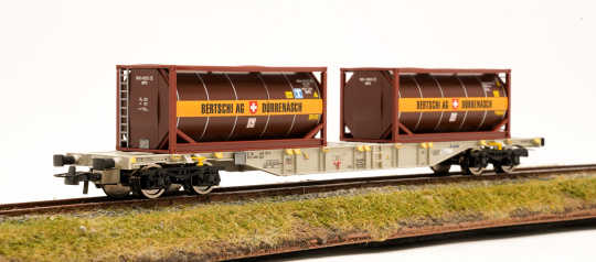 Roco 77346.A (AC) – Containerwagen Sgnss -Bertschi- der SBB
