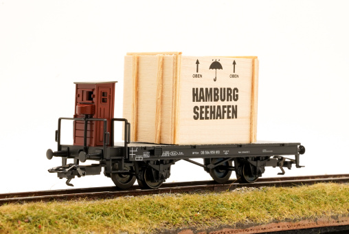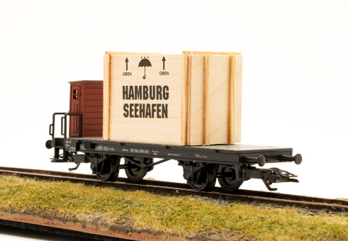 Märklin 46843 – Flachwagen H10 der DB mit Überseekiste und Lanz-Traktor