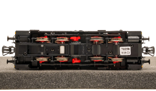 4 Achsen angetrieben, davon 3 über Kuppelstangen, 2 Haftreifen