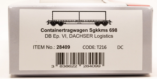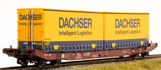 Drehgestell-Tragwagen für Großcontainer und Jumbo-Wechselbehälter. Der Wagen ist im Rahmen der neuen Tragwagenkonzeption für den Transport von Containern in Zügen des kombinierten Ladungsverkehrs vorgesehen. Auf den Außenlangträgern des Wagens befinden sich für jede vorgesehene Ladeposition feste und klappbare Aufsetzzapfen zum Festlegen der Ladeeinheiten in verschiedenen Kombinationen. Der Wagen ist für eine Beförderung von Behältern bis zu einer Breite von 2,6 m ausgelegt; die Ladefläche wurde für den Transport von Jumbo-Containern bis auf 845 mm über SO abgesenkt.