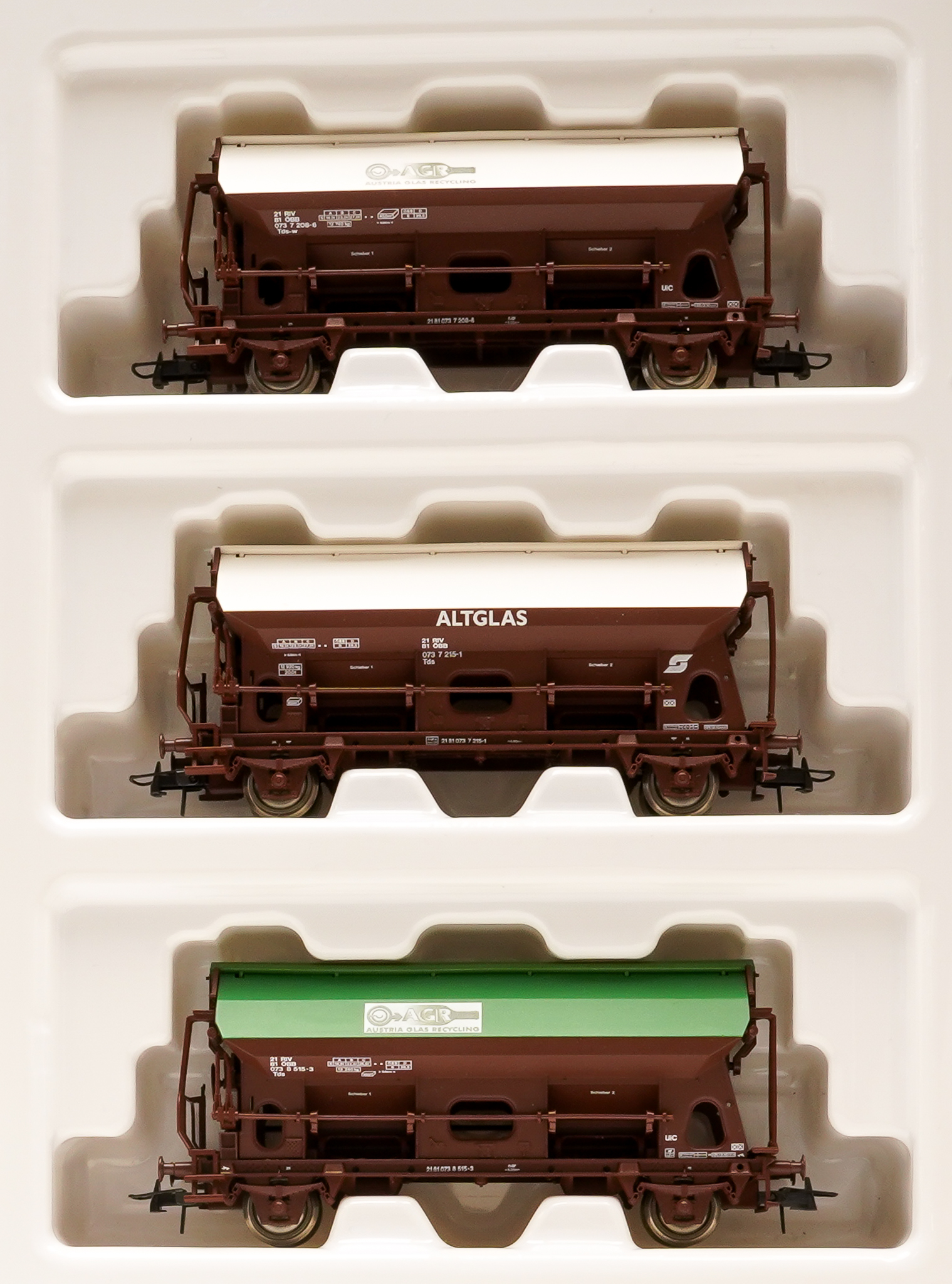 Roco 44154 – 3-teiliges Seitenentladewagen Tds -Austria Glas Recycling- der ÖBB
