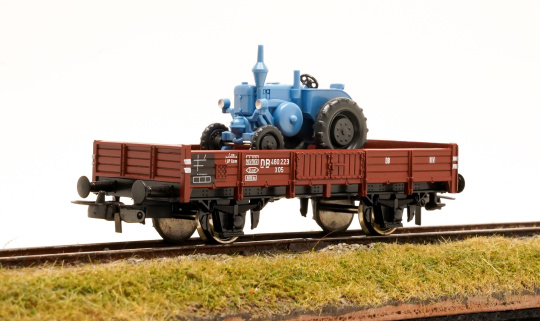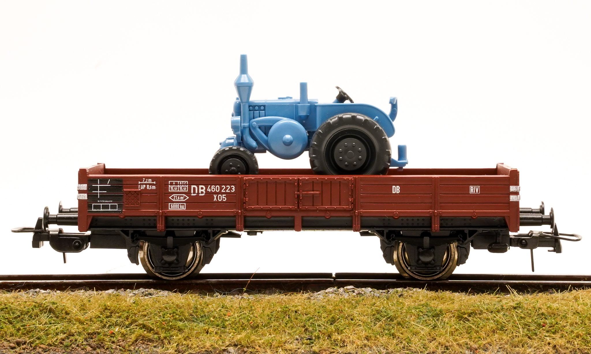 Roco 47817 – Niederbordwagen X05 der DB, beladen mit Lanz-Traktor