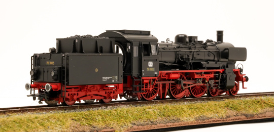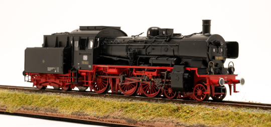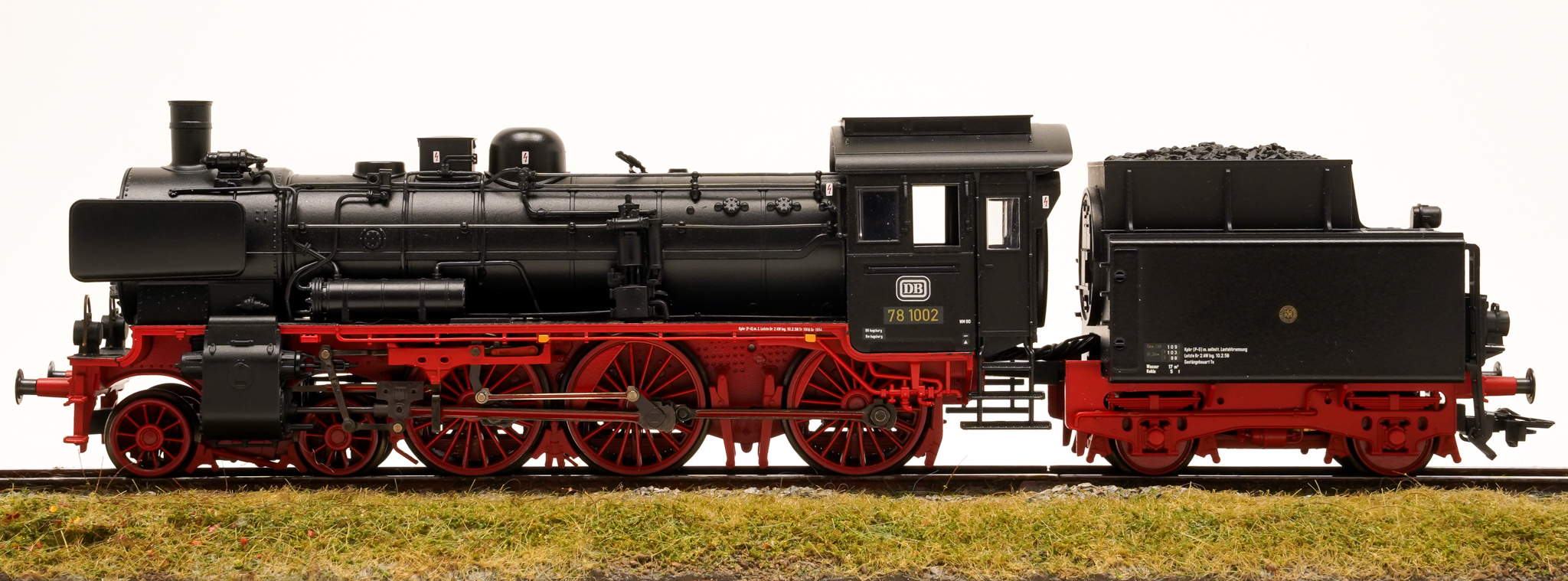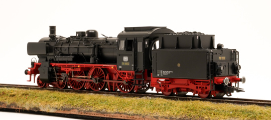 Vorbild: Dampflokomotive 78 1002, Bauart 2’C2’h2 mit zweiachsigem Kurztender 2T17 der Deutschen Bundesbahn (DB). Ausführung mit Dreilicht-Spitzensignal im Zustand um 1958.