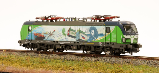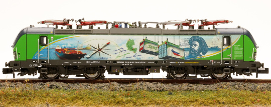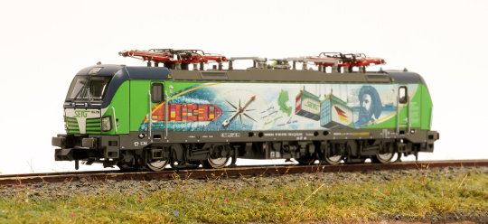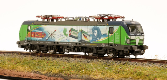 Mehrzweck-Elektrolok BR 193 „Vectron“ der Salzburger Eisenbahn Transport Logistik (SETG). Aufwendige Bedruckung im „Marco Polo“-Design. Einsatz im internationalen Güterverkehr.