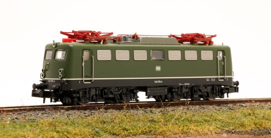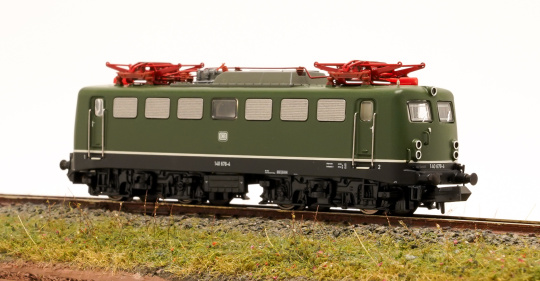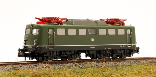 Vorbild: Einheits-Elektrolokomotive 140 der Deutschen Bundesbahn (DB). Chromoxidgrüne Grundfarbgebung. Ausführung mit Doppellampen, Kunststoffregenrinnen über den Frontfenstern und Führerstandstüren, Lüftergitter der Bauart -Schweiger- (Ursprungszustand), ungeteiltes Maschinenraumfenster mit Gummidichtung und stirnseitige Handgriffe. Zustand um 1989. Einsatz: Güter- und Personenzüge des Nah- und Fernverkehrs.