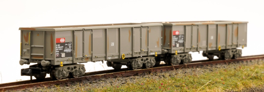 Arnold HN6062 – 2-teiliges offenes Güterwagen-Set Eaos der SBB, gealtert & Ladegut Holzhackschnitzel