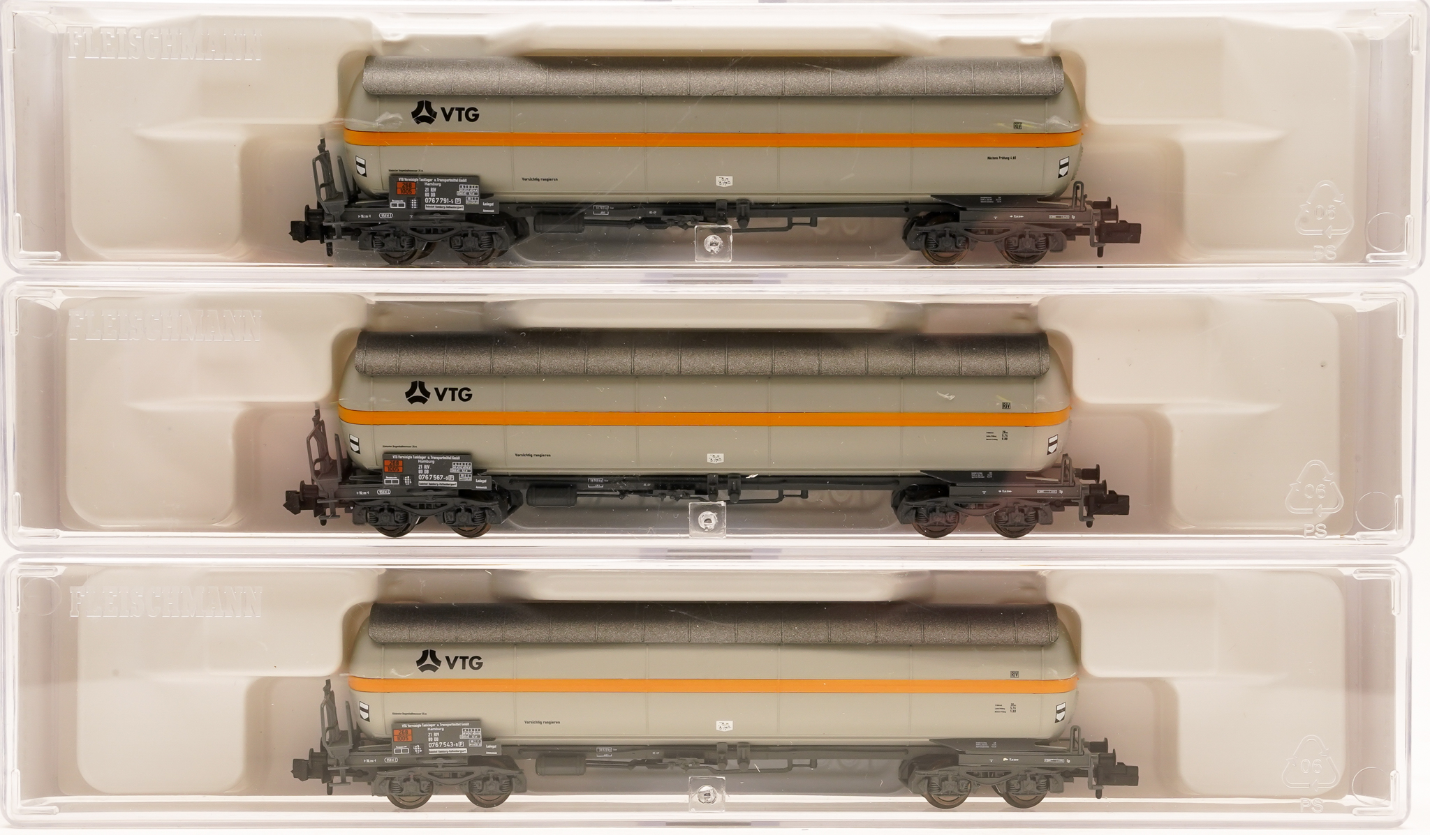 Fleischmann 849102 (N) – 3-teiliges Druckgaskesselwagen- Set Zags -VTG-, eingestellt bei der DB