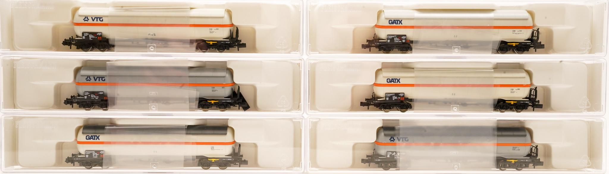 Wagen-Set mit sechs Druck-Kesselwagen mit Sonnendach