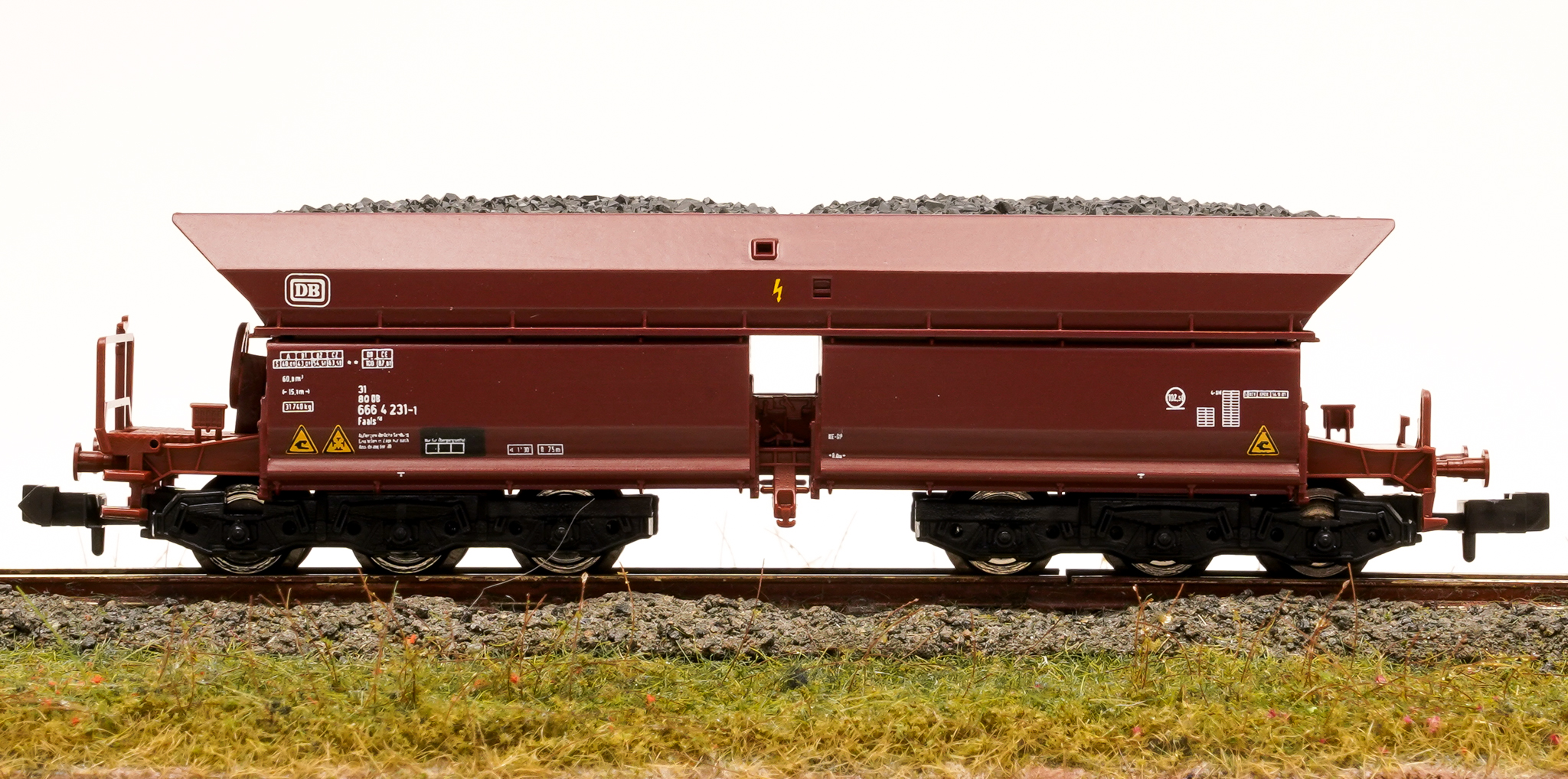 Fleischmann 852712 – Selbstentladewagen Faals 150 der DB, mit Kohle beladen