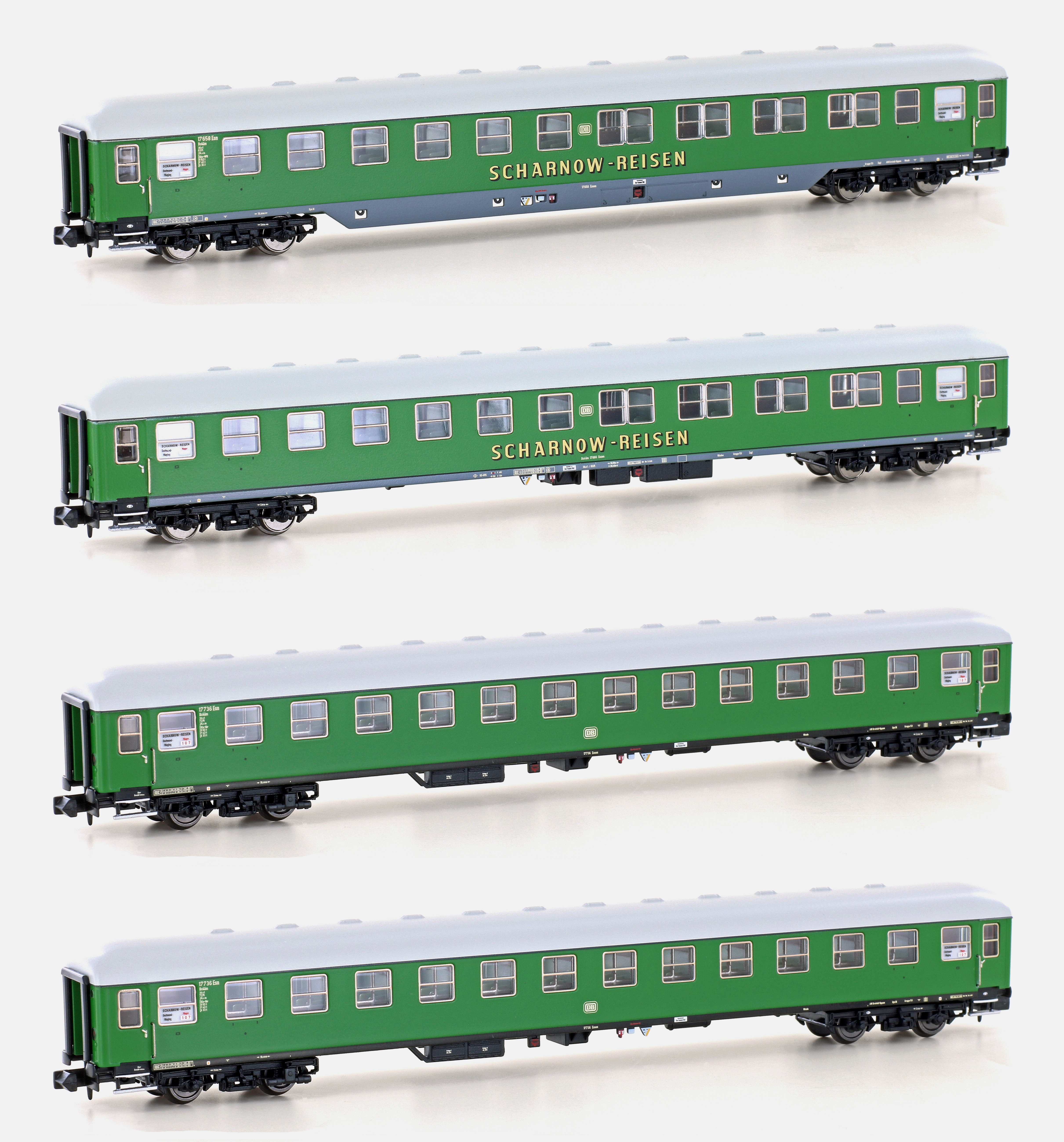 Alle Wagen verfügen über eine Innenbeleuchtung mit Stromspeicher für konstante Beleuchtung. Ein Wagen je Zug hat funktionsfähige rote Rückleuchten. Beim Scharnow-Zug ist dies der Wagen Bc4üm 17 733 aus dem Set H22203.
