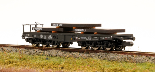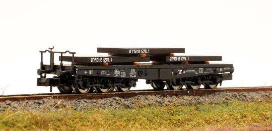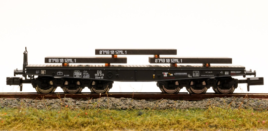 Minitrix 15281 – 10-teiliges Schwerlastwagen-Set Ssym 46 der DB, beladen mit je 3 Stahlbrammen