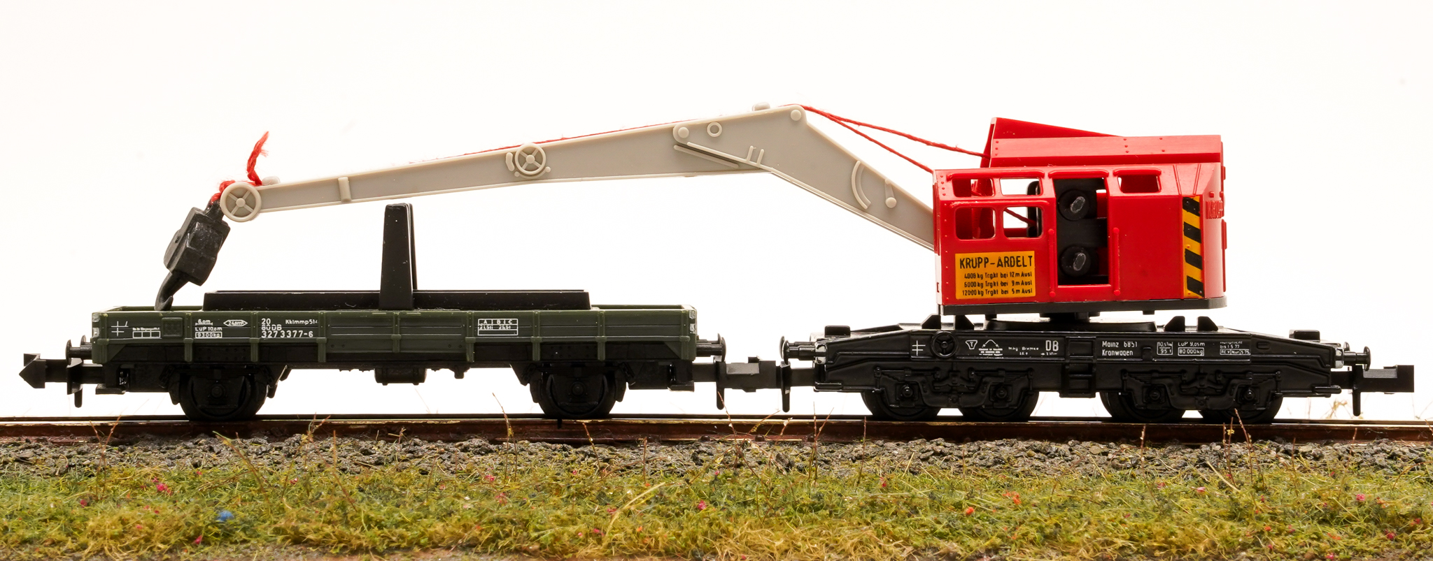 Minitrix 3590 – Kranwageneinheit mit Kranwagen der DB