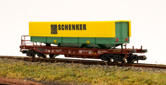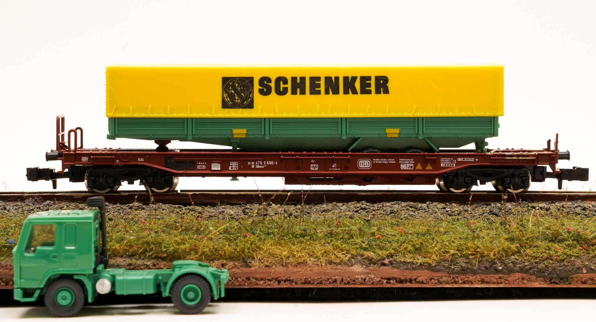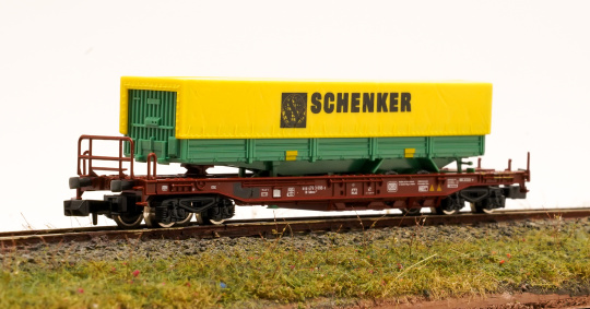 Roco 1904 (N) – Taschenwagen der DB, bel. mit Sattelauflieger Schenker