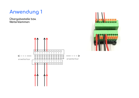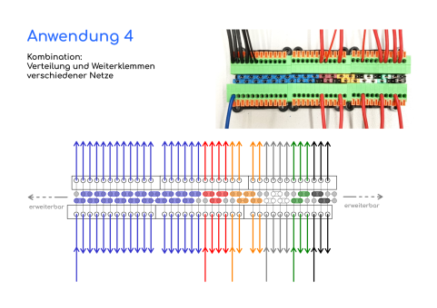 Anreihbares Verteilungsmodul mit Federzugklemmen - frei konfigurierbare Verteilung - schnelles Weiterschleifen & Verteilen von Signalen und Stromversorgungen. Mit 3 A belastbar. Jeweils zwei Klemmstellen auf jeden der 12 getrennte Reihen, die mithilfe von Steckbrücken beliebig verbunden und weitergeschleift werden können.